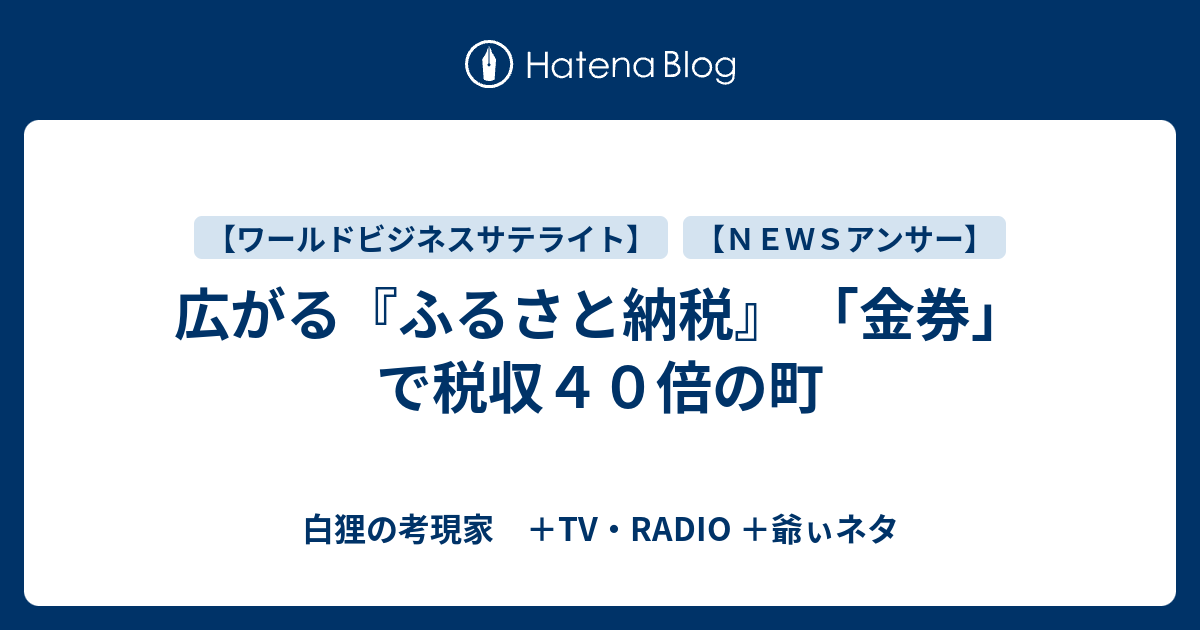 広がる ふるさと納税 金券 で税収40倍の町 白狸の考現家 tv Radio Shikohin