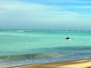 ワイキキビーチの透明度は 汚いかキレイかは画像でご覧ください