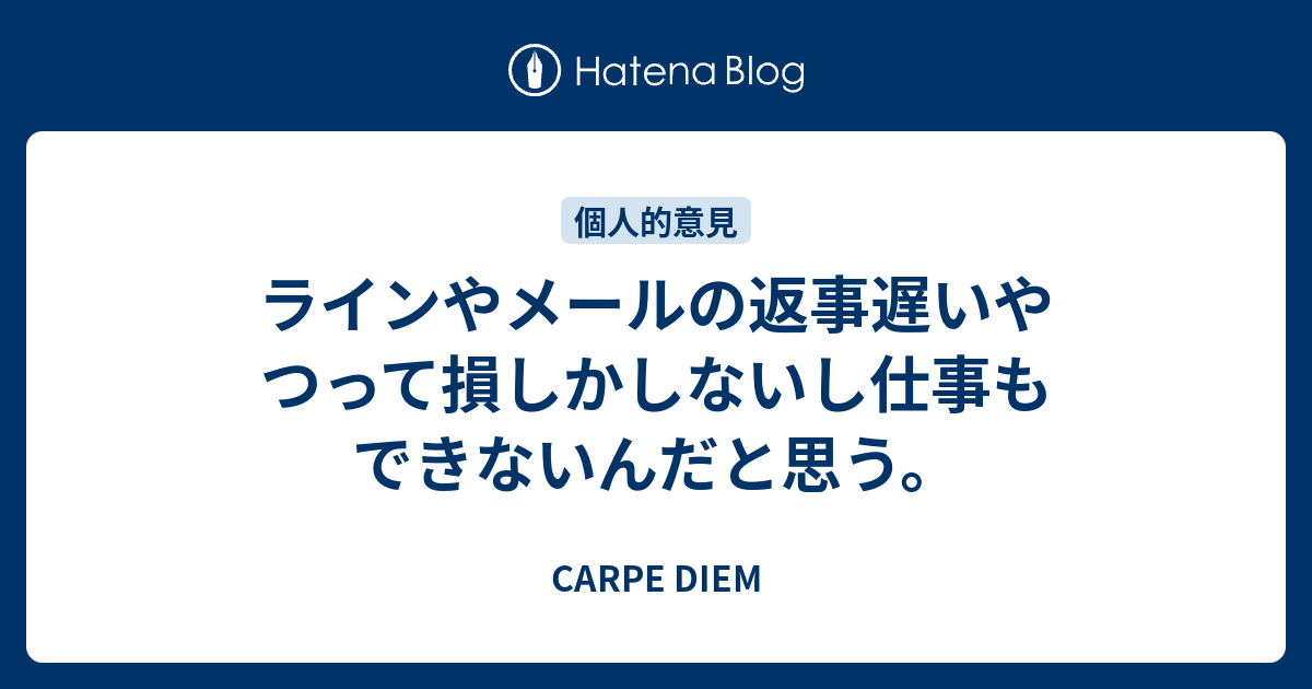 ラインやメールの返事遅いやつって損しかしないし仕事もできないんだと思う Carpe Diem