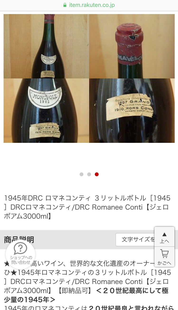 ワインガイド على تويتر 年末なので景気のいい話でもと 楽天市場で一番高いワインを調べてみたところ な なんとお値段1億円のロマネコンティが販売されていました お味のほどやいかに Https T Co Zcyu0qxf8m 高額ワイン 楽天市場 ロマネコンティ Https T