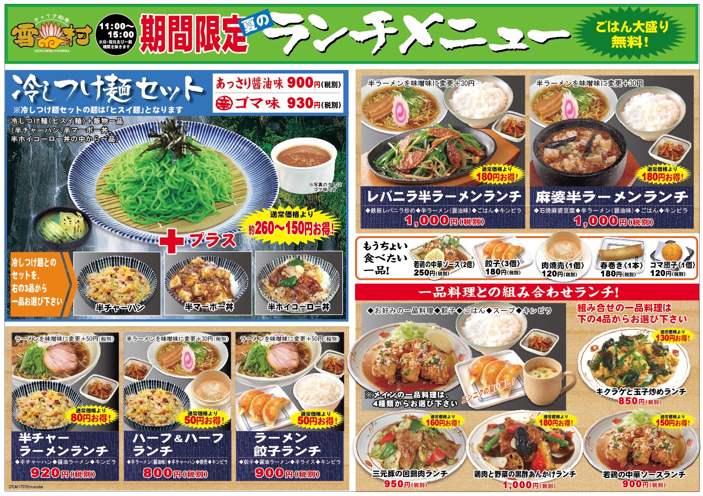 チャイナ厨房雪村 中華料理ゆきむらで夏限定ランチメニュースタート 暑い季節にパワーをチャージ こだわりらーめんゆきむら亭 めん商人などラーメン 中華料理チェーン 雪村グループ 茨城県 栃木県 千葉県