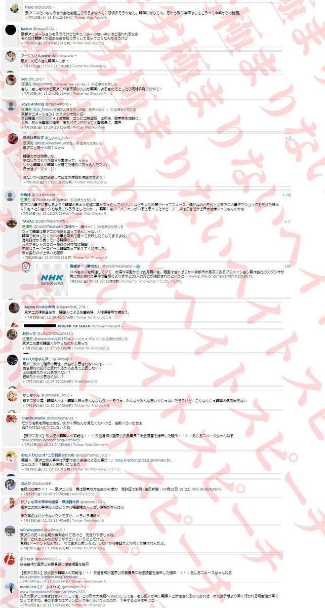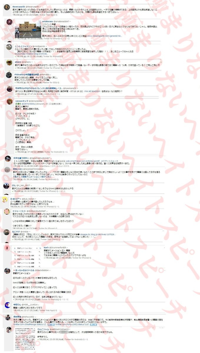 Tweet 京都アニメーション放火火災事件でもヘイトデマなどヘイトスピーチが蔓延 Naver まとめ