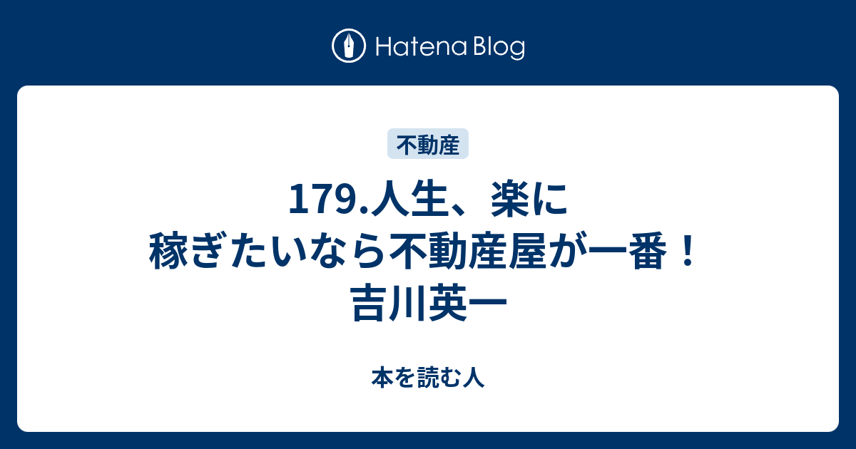 179 人生 楽に稼ぎたいなら不動産屋が一番 吉川英一 本を読む人
