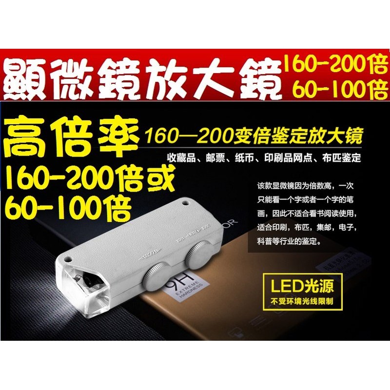 最新款160 200倍或60 100倍高倍率迷你led燈顯微鏡放大鏡攜帶型顯微鏡噴油嘴印刷自然科學教學 露天拍賣