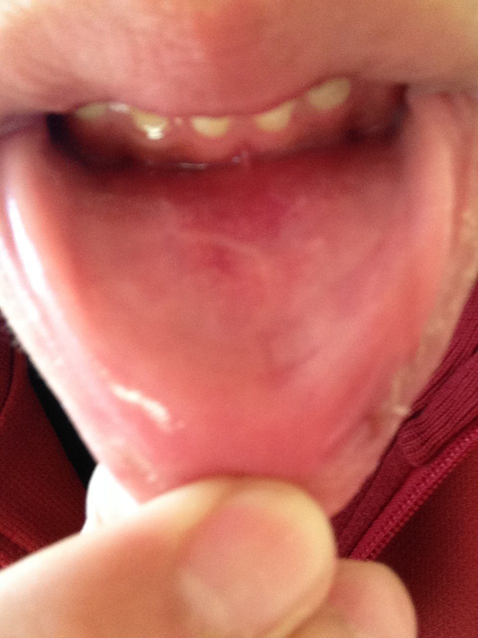 下唇の裏に白い線が出来ていましたものすごく痛くて 腫れています表には赤い Yahoo 知恵袋