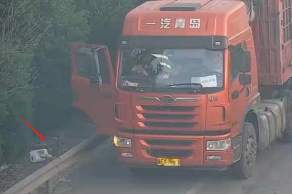 大货车高速违停两司机上演惊险交接班 卡车之家