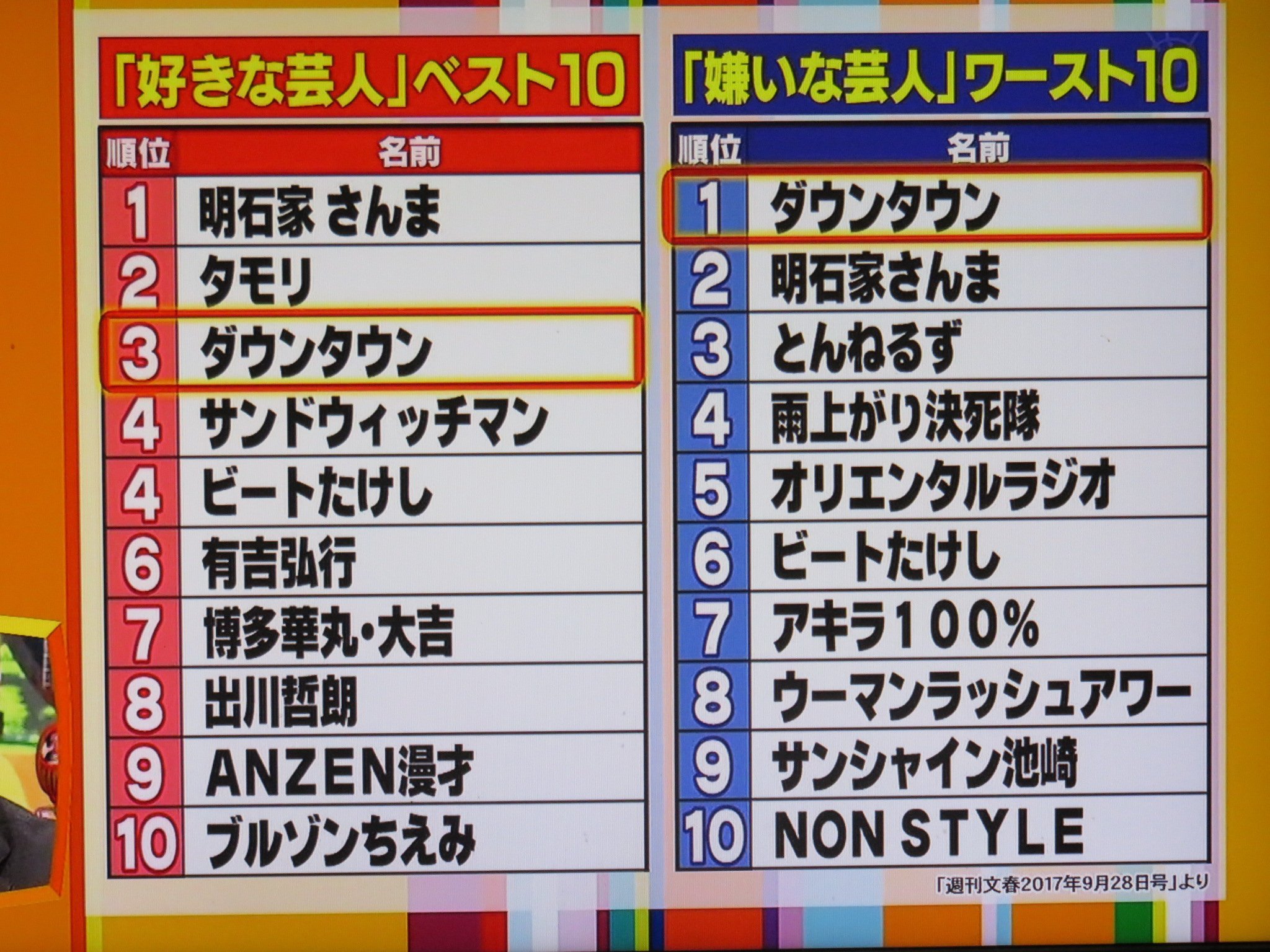 業界も注目 好き 嫌いランキングから分かる 消えそうな芸人 2018年11月20日 エキサイトニュース