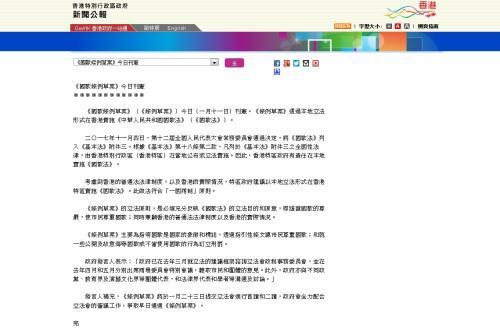 香港 国歌法 草案11日刊宪23日将交立法会首读