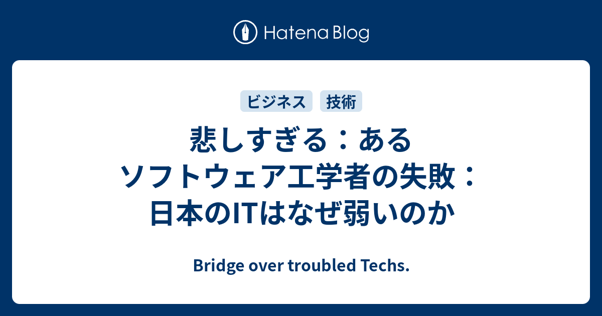 悲しすぎる あるソフトウェア工学者の失敗 日本のitはなぜ弱いのか Bridge Over Troubled Techs