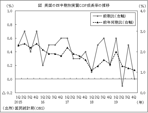 2019年第4四半期のgdp成長率 前期比横ばいも通年では1 4 に 英国 ビジネス短信 ジェトロ